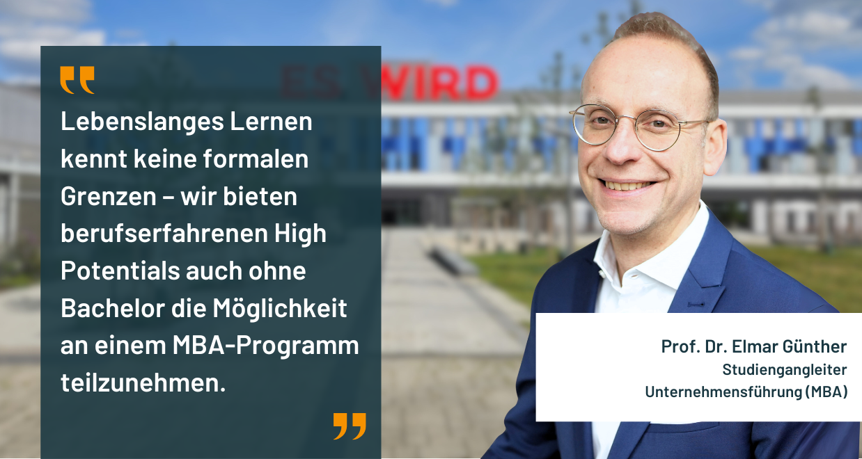 Sie sind an einem Masterstudium interessiert? Sie haben jedoch keinen Bachelorabschluss oder kein Abitur? Dafür haben Sie aber z. B. eine anerkannte Berufsausbildung abgeschlossen und inzwischen Berufserfahrung gesammelt? In Rheinland-Pfalz können Sie auf verschiedenen Wegen, auch ohne ersten Hochschulabschluss, zum weiterbildenden Masterstudium (meist mit dem Abschluss Master of Business Administration - MBA) zugelassen werden. Wie das geht? Hier finden Sie alle Infos und Ansprechpersonen bei uns.